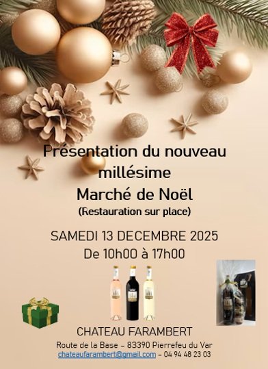 Marché de Noël au Château Farambert : découvrez notre nouveau millésime ! Le samedi 13 décembre 2025, de 10h00 à 17h00, le Château Farambert, situé à Pierrefeu-du-Var, vous ouvre ses portes pour une journée festive et gourmande lire la suite » 24 octobre 2025